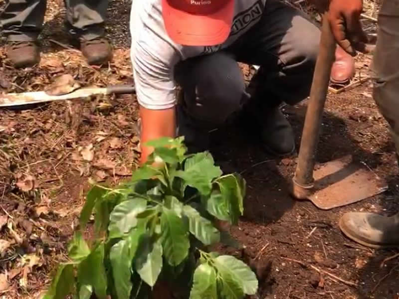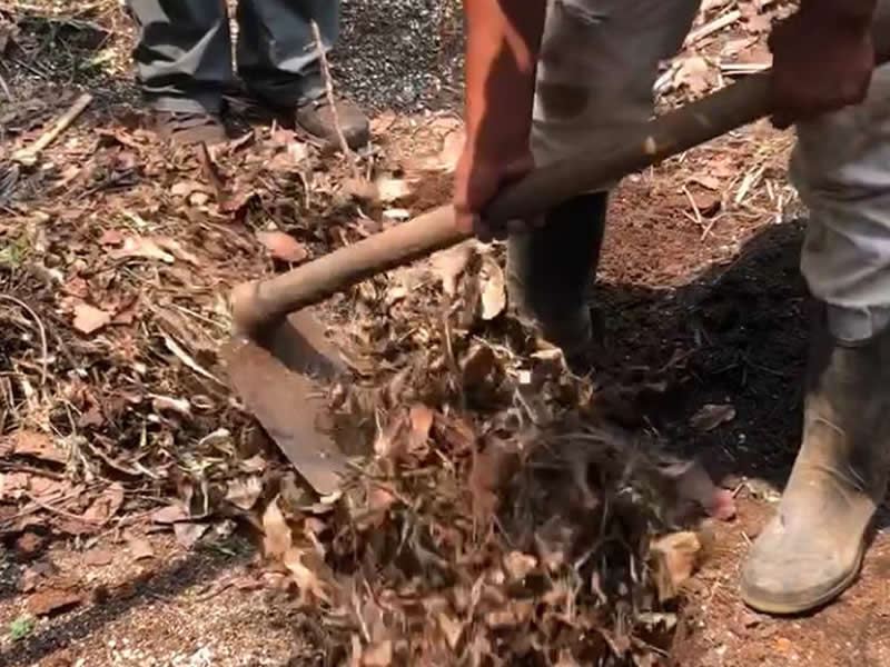 The holes for planting are made one year before planting and a chemical study of the soil is defined by the satellite so that we can apply any lacking substances to the soil prior to plantation. Additionally, coffee pulp in the process of decomposition has been applied to it for 2-3 years.